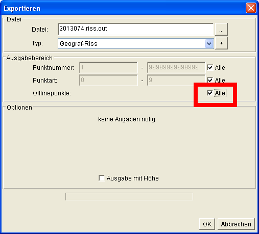 Die Ausgabe zur Risserstellung erfolgt über den Export Geograf-Riss.