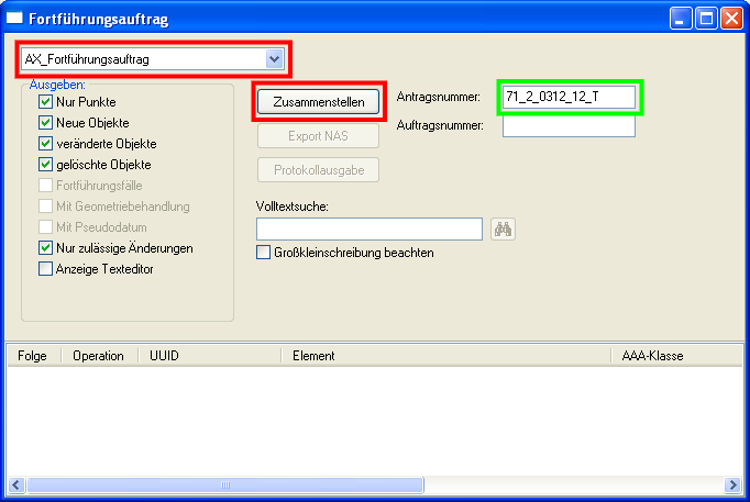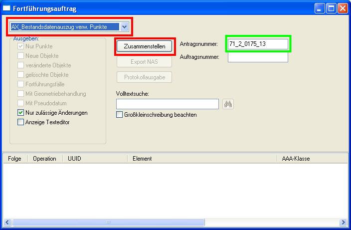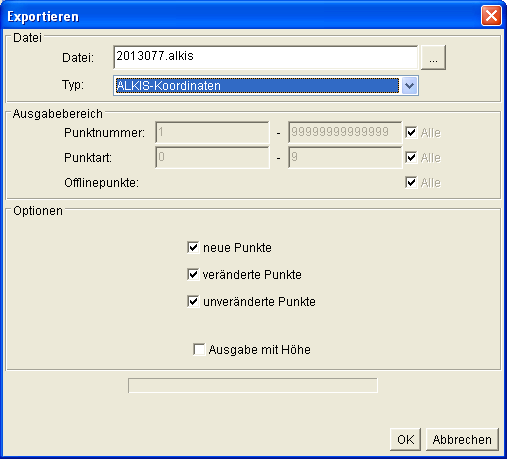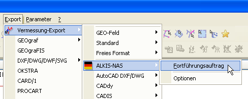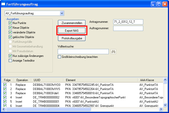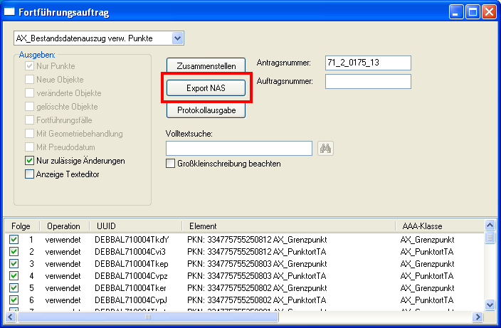 Die Daten zur Fortführung enthalten alle neuen in ALKIS einzuführenden Punkte, sowie geänderte oder zu löschende Altpunkte. Der Export hierfür erfolgt in zwei Schritten, zuerst werden die Daten zusammengestellt: