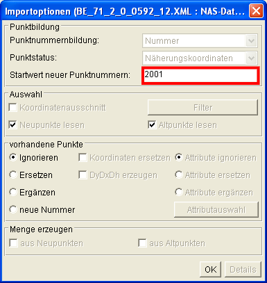 Im dann folgenden Dialog ist der Import von bereits in den Bestandsdaten vorhandenen Punkten zu vereinbaren. Wird für den Koordinatenabgleich hier