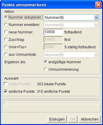 7000-9999 digitalisierte Punkte). Den Punkten werden nach Fertigstellung des Aufmaßes und der Berechnungen mit Hilfe der Umnummmerierungsliste