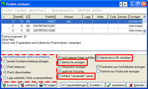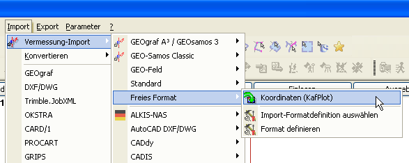 Anschließend können die Fortführungsdaten importiert werden, d.h. die mit KafPlot erstellten ALKIS-Koordinaten: