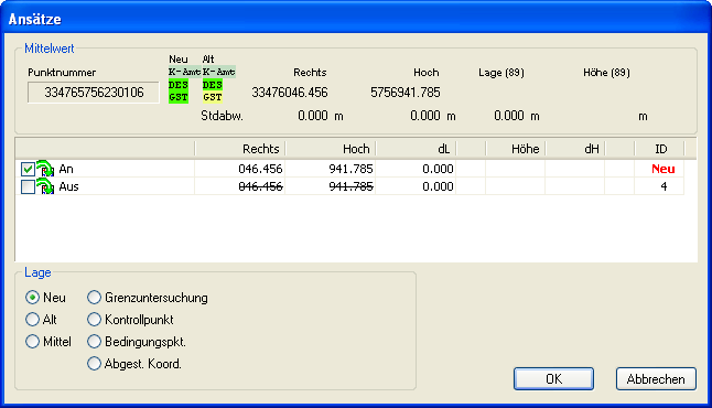 Für festgestellte Punkte, die wiederhergestellt werden müssen, sollte der Katasternachweis so vollständig wie möglich eingegeben werden. So erhält man in der Regel die geringsten Widersprüche bei der Ausgabe der Identitätsliste.