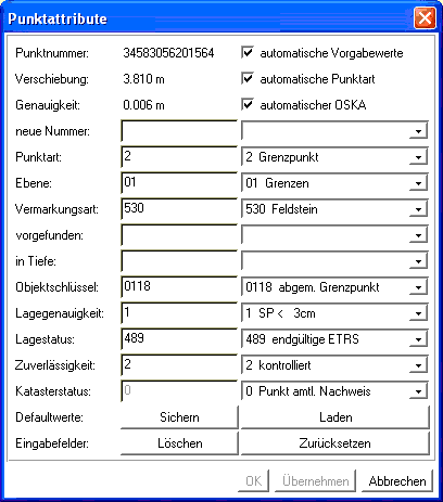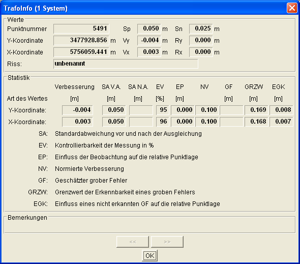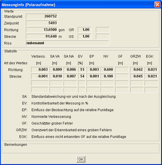 Im Feld Bemerkungen werden Aussagen über die Qualität der Punkte getroffen.