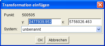 Mit diesem Dialog kann der angewählte Punkt in ein Transformationssystem eingefügt werden.