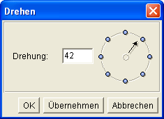 Die Grafik kann mit diesem Dialog gedreht werden. Der Drehwinkel kann in dem Eingabefeld eingegeben oder mit der Maus eingestellt werden.