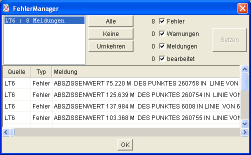 Fehlermeldungen: Fehlermeldungen aus der Datenprüfung werden dargestellt.