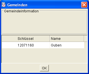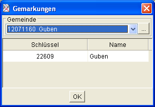 Der Dialog ist eine Auflistung aller in der gemarkung.propertis enthaltenen Gemeinden.