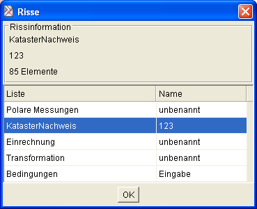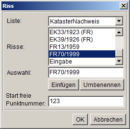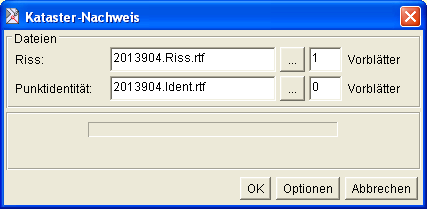 Über diesen Dialog werden die Listen für den Katasternachweis ( Riss- und Identitätsliste ) ausgegeben.