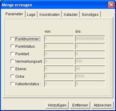 Ist der Schalter Schriftfilter gesetzt, kann ausgewählt werden, welche Punkte beschriftet werden. Für diese Auswahl öffnet sich der aus der Mengenerzeugung bekannte Dialog.
