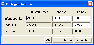 Beim Messen einer Orthogonalen Linie kann per Doppelklick das entsprechende Dialogfenster aufgerufen werden. In diesem können lineare und seitliche Anlegemaße eingegeben werden. Die Parameter der Linie werden bei Bestätigung des Dialoges übernommen.