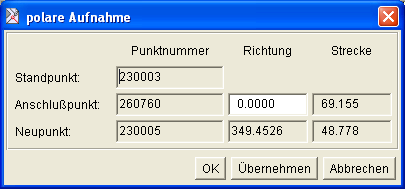 Beim Messen einer polaren Aufnahme kann per Doppelklick das entsprechende Dialogfenster aufgerufen werden. In diesem kann eine Referenzrichtung eingegeben werden.