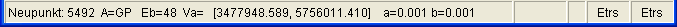 Im zweiten Anzeigefeld wird die Anzahl der Punkte angezeigt, die sich in einer eventuell erzeugten Menge befinden. Das dritte Anzeigefeld zeigt das Koordinatensystem der Punktnummerierung an. Im rechten Feld wird das Koordinatensystem angezeigt, in dem sich die Punktkoordinaten des Auftrages befinden.