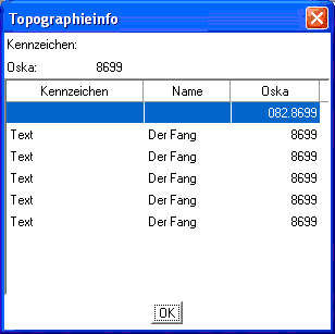 Dieser Dialog wird aufgerufen, wenn auf ein markiertes Topografie-Objekt doppelt geklickt wird.