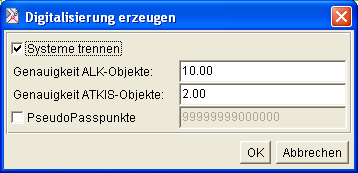 unterscheidet hierbei nach ALK-Daten und ATKIS-Daten, d.h. es werden anhand der OBAK-Schlüssel getrennte Digitalisiersysteme erzeugt.