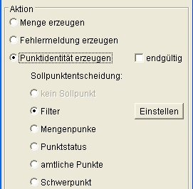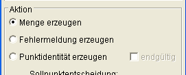 Bei der Schalterstellung Punktidentität erzeugen kann definiert werden, welche der doppelten Punkte bei einer Verschmelzung als Sollpunkt erhalten bleiben soll (Sollpunktentscheidung):