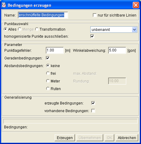 In der Regel wird sich die Bedingungsgenerierung auf ein Transformations- bzw. Digitalisiersystem beziehen, da bei der Fehlerabschätzung immer der Kartenmaßstab und die Kartenqualität beachtet werden muß.