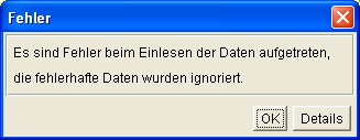 Beim Importieren wird die Fehlerdatei <auftrag>.Import.err erzeugt, in der eventuell aufgetretene Fehler dokumentiert werden. Diese Fehlerdatei kann in KafPlot importiert werden, die fehlerhaften Objekte werden dann markiert dargestellt und die Meldungen an der fehlerverursachenden Stelle angezeigt.