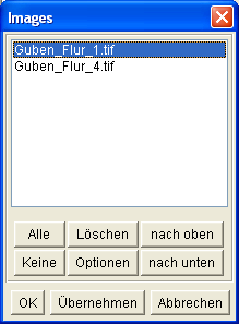 oder mit den Schaltern Alle oder Keine an- bzw. ausgeschalten werden. Der Schalter Löschen entfernt die markierten Bitmaps