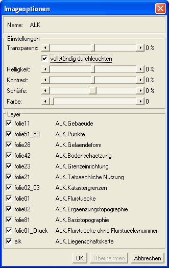 Der Schalter Optionen führt in den Optionen-Dialog für das markierte Bild. Hier finden sich alle Einstellungen