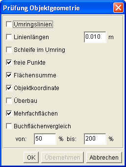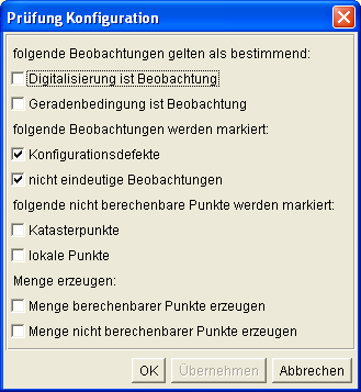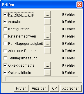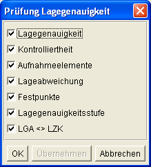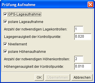 Mit diesem Dialog können Lage- und Höhenaufnahme geprüft werden.