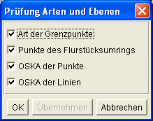 Des weiteren wird anhand der Nutzungsart der Oskaschlüssel der Flurstücke geprüft. Ebenfalls wird die korrekte Verschlüsselung der Marksteinschutzflächen geprüft.
