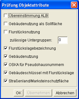 Die Übereinstimmung der Flurstücke wird mit dem ALB abgeglichen. Treten bei einem Flurstück Abweichungen auf, und ist das Flurstück nicht fortgeführt, wird eine Fehlermeldung ausgegeben.